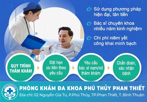 Phòng Khám Đa Khoa Phú Thủy Phan Thiết - Đơn vị y tế đồng hành cùng sức khỏe sinh lý nam giới. Với những yếu tố của một phòng khám chuẩn quốc tế, chúng tôi sẵn sàng đón tiếp cũng như có thể giúp bạn giải đáp được những tâm tư về “cậu bé” một cách chu đáo và rõ ràng.
